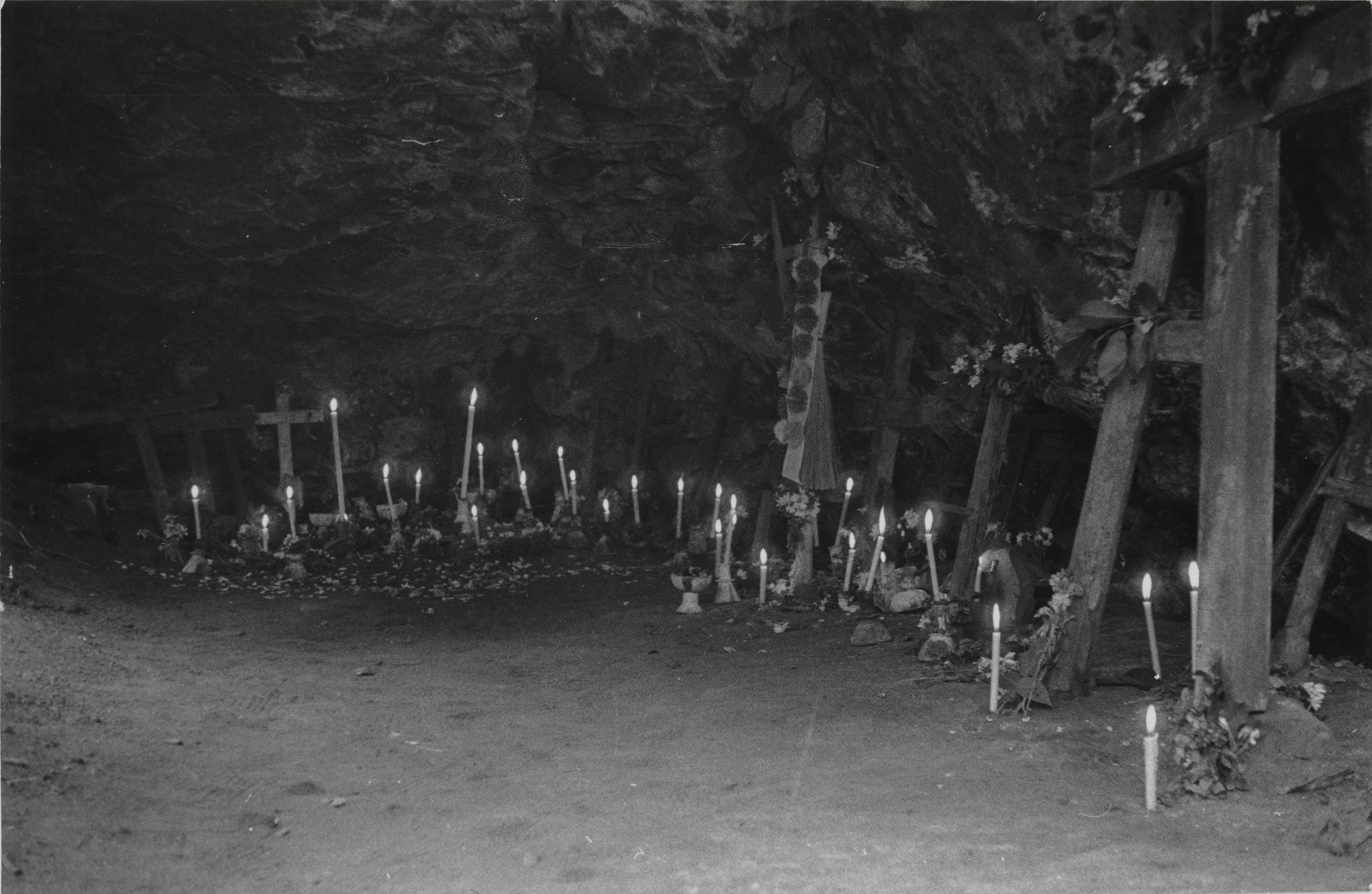 1 Fotografía : positivo ; imagen 16.5 X 10.7 cm. ; soporte de papel 16.5 X 10.7 cm., monocromática. La fotografía tiene rayones superficiales y en el reverso presenta las siguientes inscripciones: Alcalica cave Iztaccihuatl Nahua ceremony 171/28 Photograph by Bodil Christensen [sello].