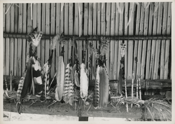 1 Fotografía : positivo ; imagen 16.8 X 11.9 cm. ; soporte de papel 17.5 X 12.6 cm., monocromática. Fotografía en buen estado de conservación, tiene en el reverso las siguientes inscripciones: Huichol sacred arrows 95/22 Photograph by Bodil Christensen [sello].Date