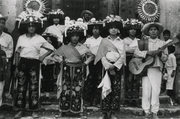 1 Fotografía : positivo ; imagen 16.5 X 10.9 cm. ; soporte de papel 16.5 X 10.9 cm., monocromática. Fotografía en buen estado de conservación, al reverso tiene las siguientes inscripciones:Puebla Cuetzalan Nahua 157/3 "Los Negritos" Photograph by Bodil Christensen [sello].Date