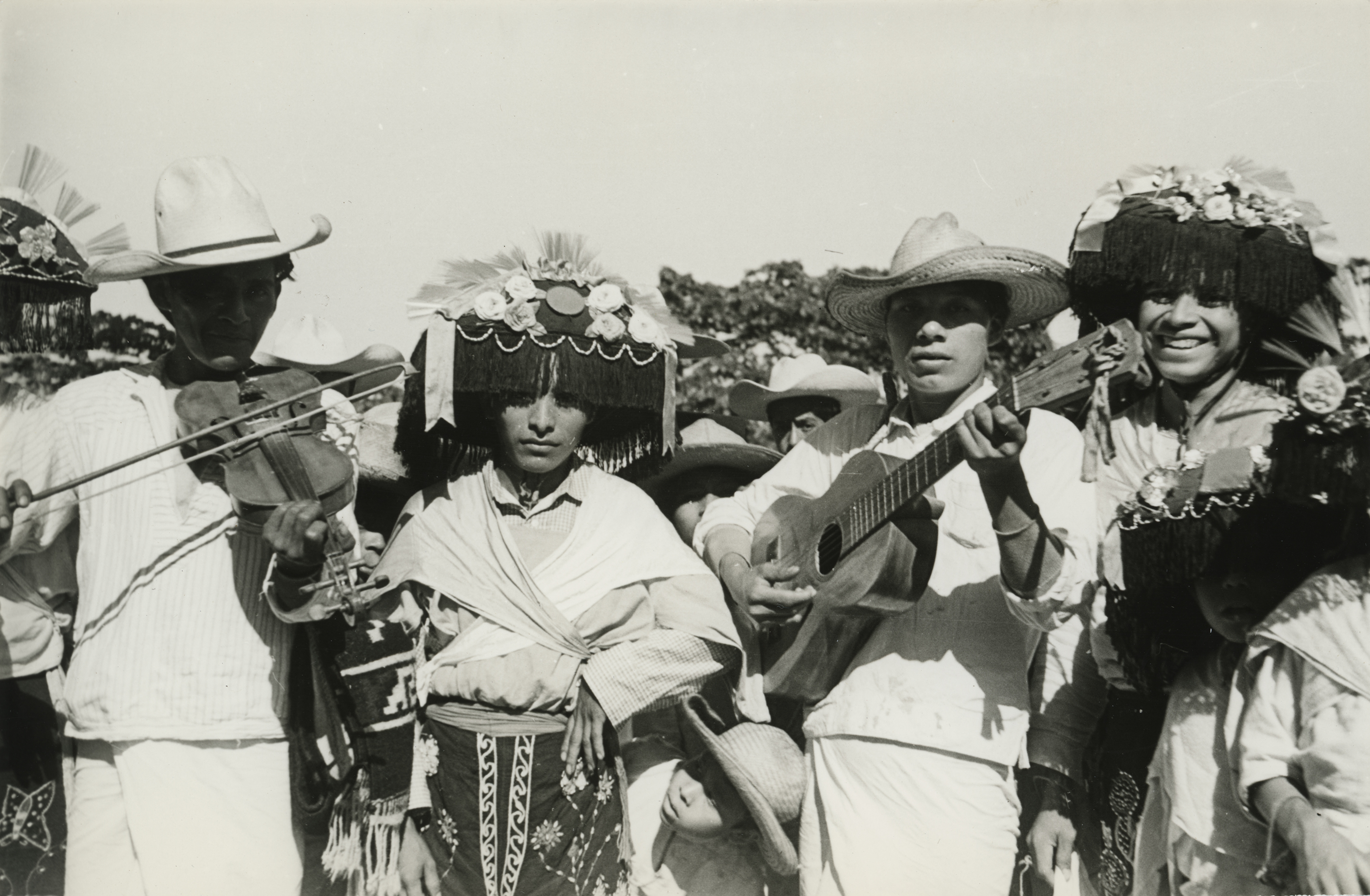 1 Fotografía : positivo ; imagen 16.5 X 10.8 cm. ; soporte de papel 16.5 X 10.8 cm., monocromática. La fotografía tiene una coloración sepia y tiene rayones superficiales, al reverso las siguientes inscripciones: Puebla Cuetzalan Nahua 152/3 "Los Negritos" Photograph by Bodil Christensen [sello].Date