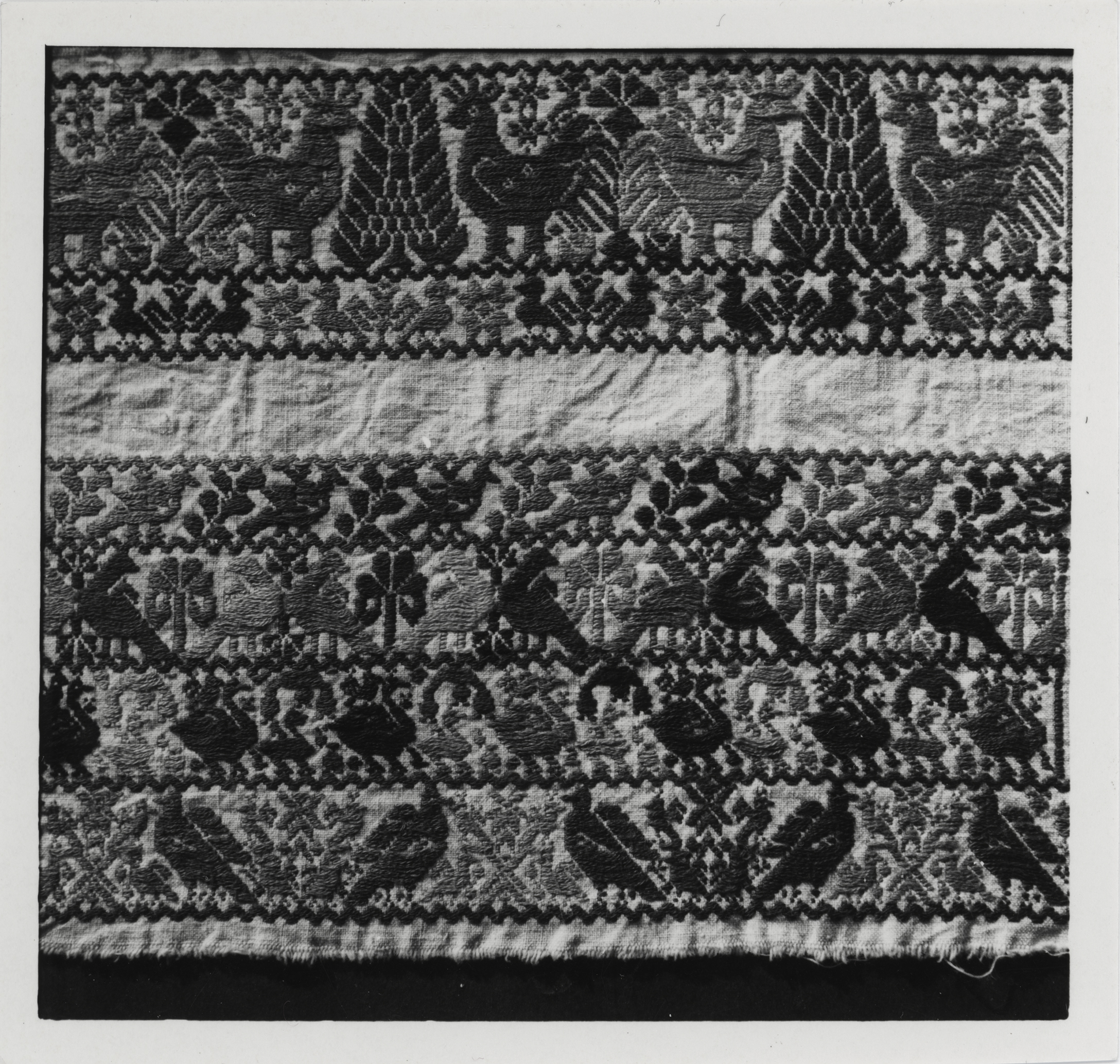 1 Fotografía : positivo ; imagen 11.3 X10.6 cm. ; soporte de papel 11.3 X10.6 cm., monocromática. Fotografía en buen estado de conservación, tiene en el reverso las siguientes inscripciones: Puebla San Pablito Otomi 835 Blouse design Photograph by Bodil Christensen.