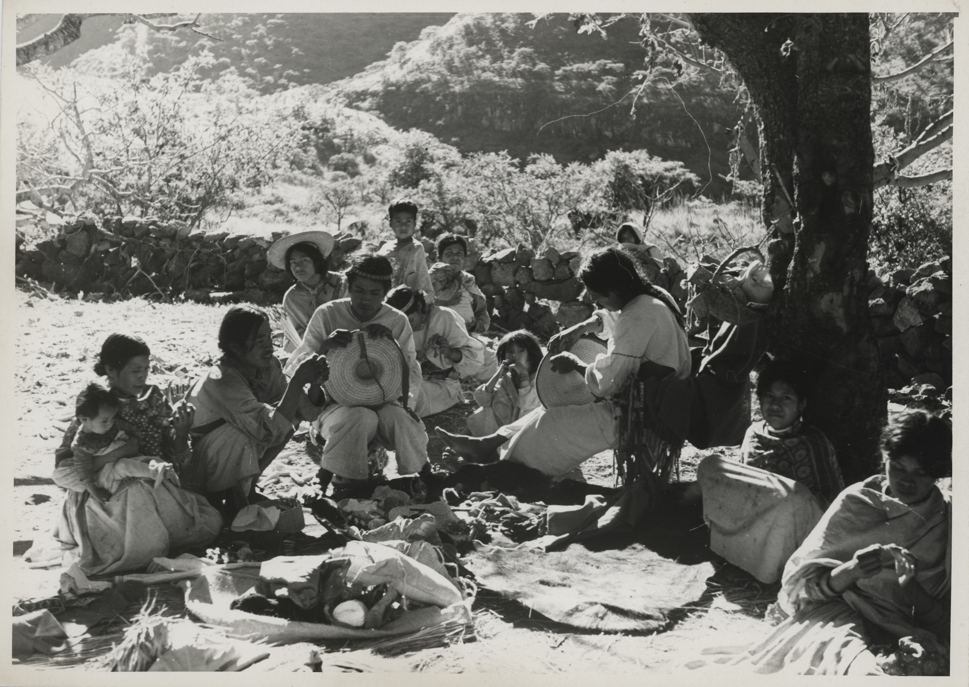 Grupo de indígenas Huicholes en el Estado de Jalisco, ensimismados en sus labores cotidianas.