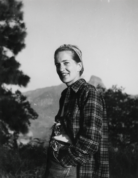Maestra Irmgard Weitlaner Johnson, en la subida entre Hormiguero y Pemuxco, Hidalgo, en diciembre de 1952.