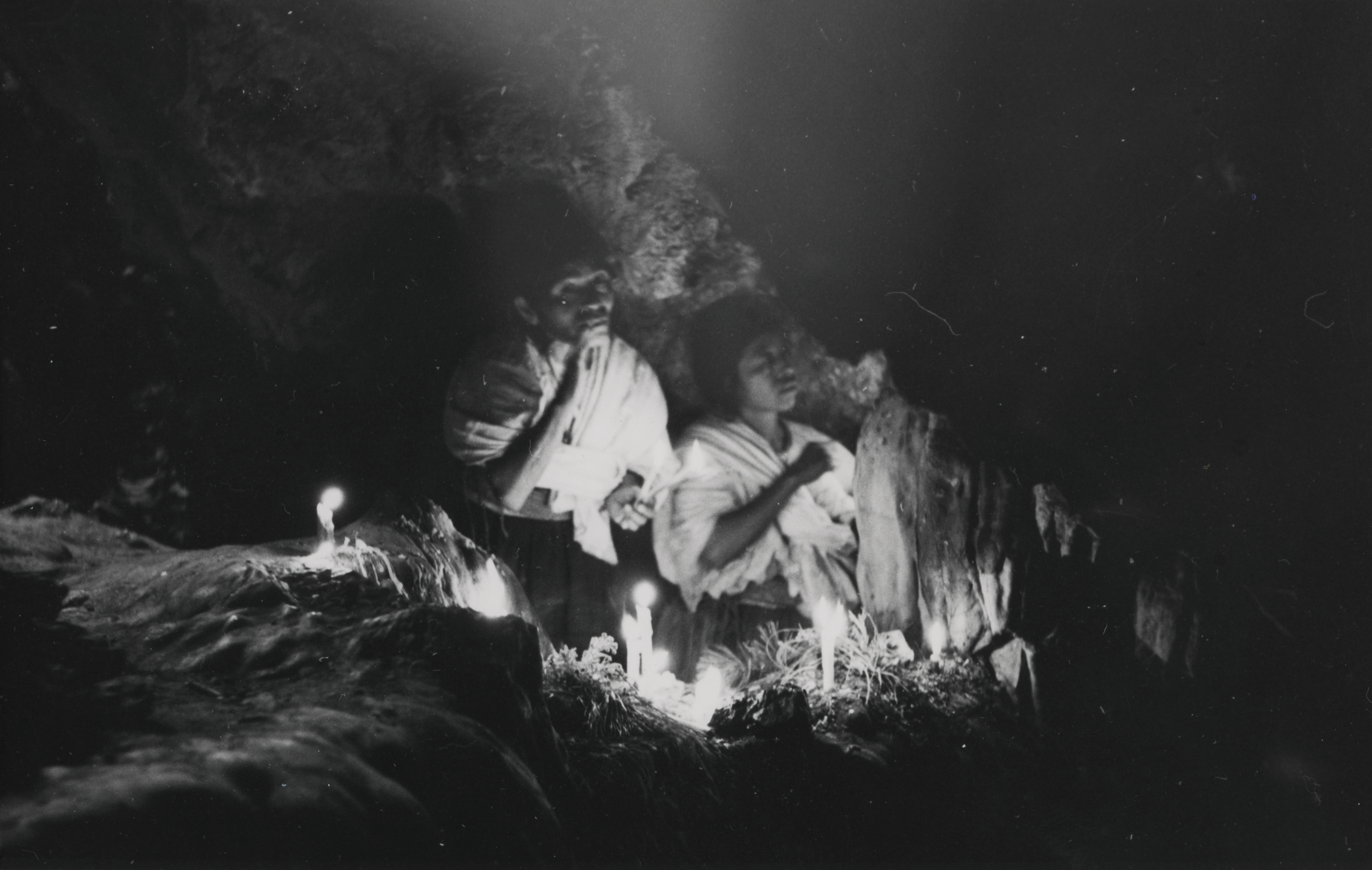 Ofrendas en la cueva cerca de Ixcuintepec, Oaxaca.