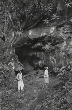 Cueva donde la Virgen apareció, en Santiago Ixcuintepec, Oaxaca. De izquierda a derecha Don Tomás, Cipriano y Bodil