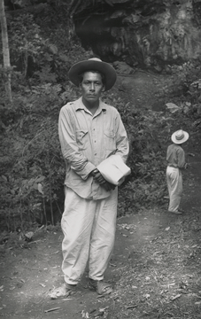 Cipriano originario del Istmo de Tehuantepec, en la cueva donde apareció la virgen. Cipriano Martínez fue uno de los "muchachos" guía que trabajó con Don Tomás.