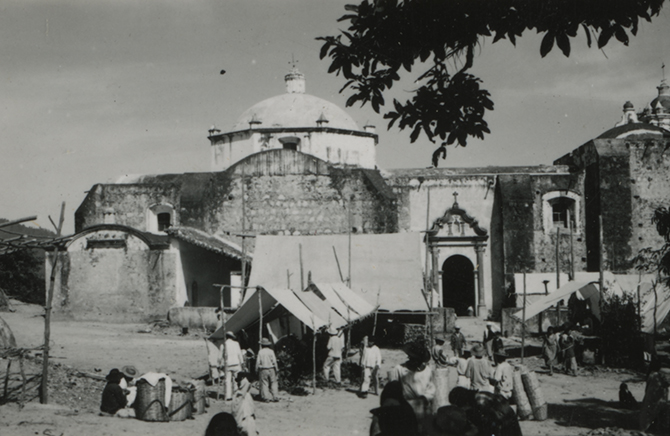 Lugareños y pobladores de comunidades aledañas, se congregan en la localidad mixe de Santiago Ixcuintepec, Oaxaca, para celebrar la fiesta de la Purísima Concepción. Los mercaderes ofrecen sus productos en puestos improvisados con techos de manta alrededor de la iglesia.