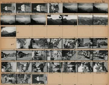 Hoja de papel cartulina comercial, en la que se encuentran pegadas 38 imágenes del viaje realizado por la autora y colaboradores en los meses de noviembre y diciembre de 1953.