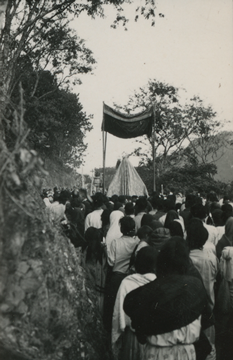 La comunidad mixe de Santiago Ixcuintepec, Oaxaca, festeja su fiesta en honor a la Purísima Concepción. Sale la Virgen en procesión recorriendo las calles de la población, acompañada de los lugareños y peregrinos que provienen de comunidades aledañas para dicha celebración.