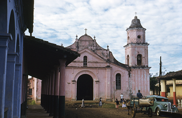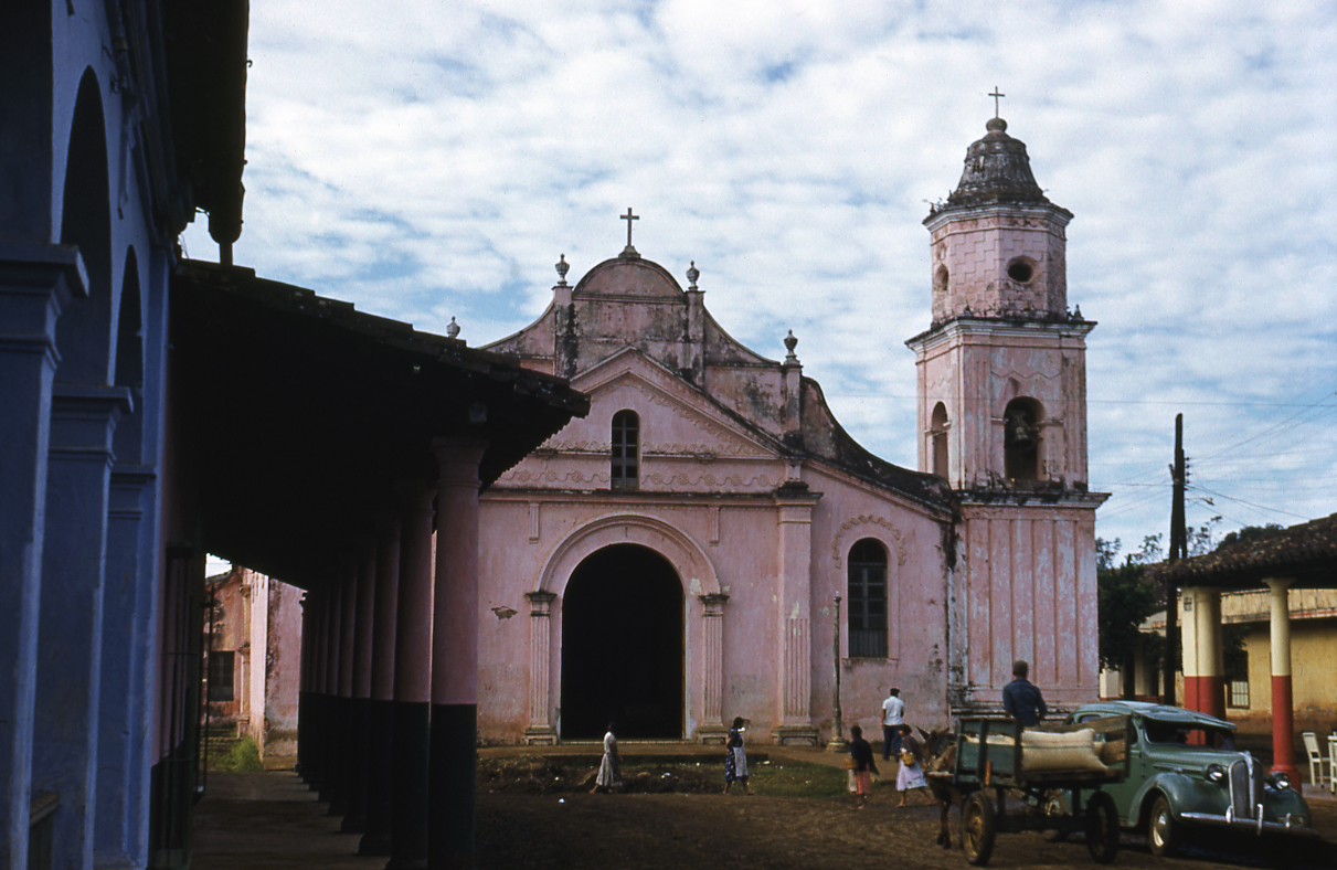 "El templo de Santa Rosa de Lima, data del siglo XVll, según consta en una hoja suelta de registro de bautizos de indios de 1616, que aún existe en el archivo de la Parroquia del Sagrario en el templo de Catedral y, en una de las tres campanas que están en la torre del templo de Santa Rosa de Lima, la cual tiene grabada la frase en latín “Santa María ora pronobis año D 1609”. La construcción de dicha obra se inició en 1799 y, de 1809 a 1838, por diversas causas se interrumpe y se vuelve a reanudar la construcción del templo, el cual al fin se concluye, inaugurándose el 11 de abril de 1847. El sábado 11 de Enero de 1955, a las 23:45 horas se incendió el templo y con él, imágenes muy veneradas por la grey católica, además de una gran parte del archivo parroquial; el estilo con el que había sido construido el templo que desapareció en el siniestro, era Neoclásico".Diapositiva en buen estado de conservación.