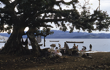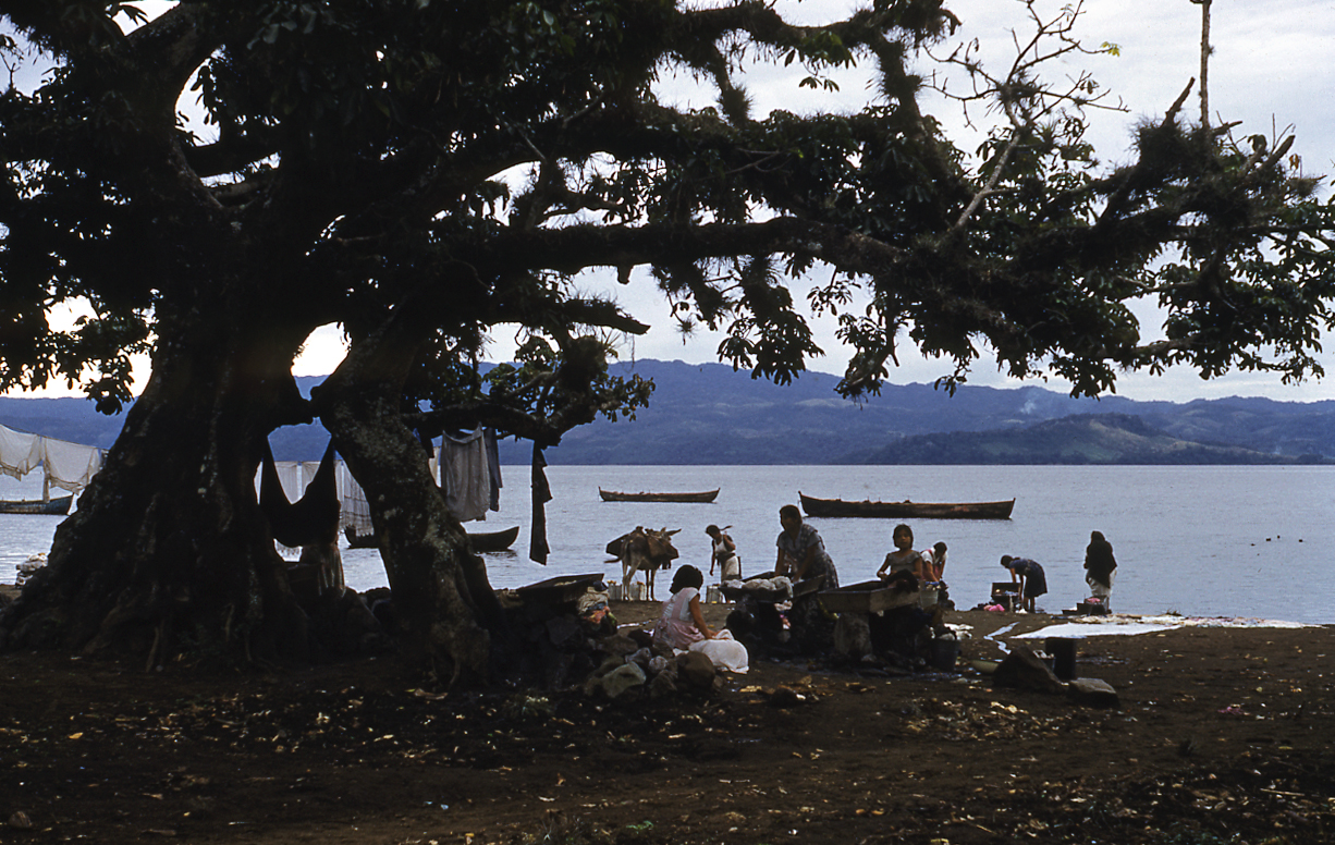 Mujeres lavando ropa en las riveras de la laguna de Catemaco.