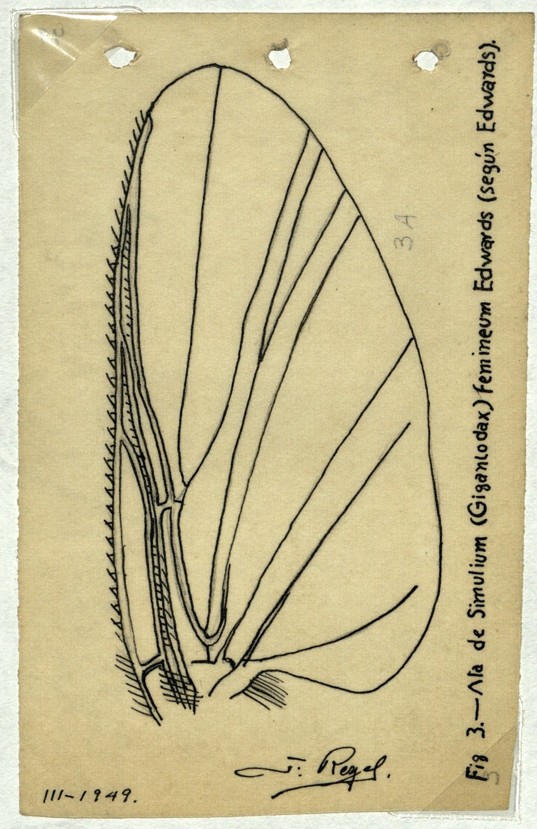 Fig 3.- Ala de Simulium (Gigantorax) femineum Edwards (según Edwards).