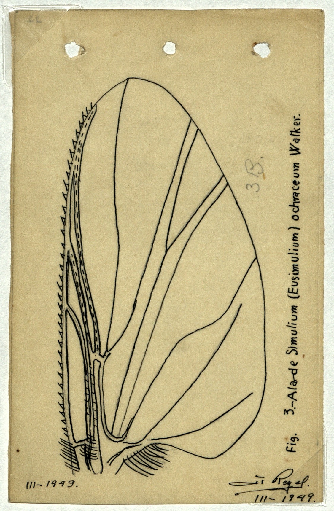 Fig 3.- Ala de Simulium (Eusimulium) ochraceum Walker. (3B con lapiz).