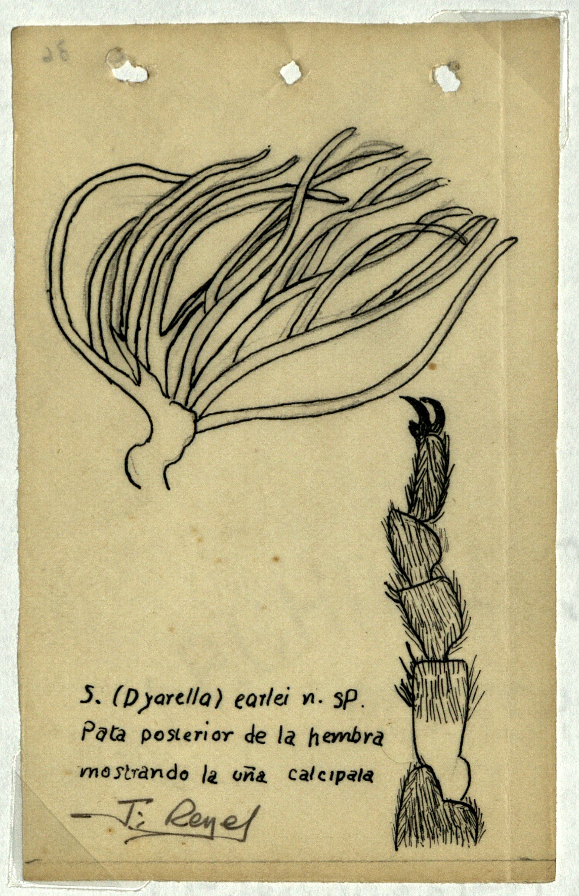 S. (Dyarella) earlei n. sp. Pata posterior de la hembra mostrando la uña calcipala.