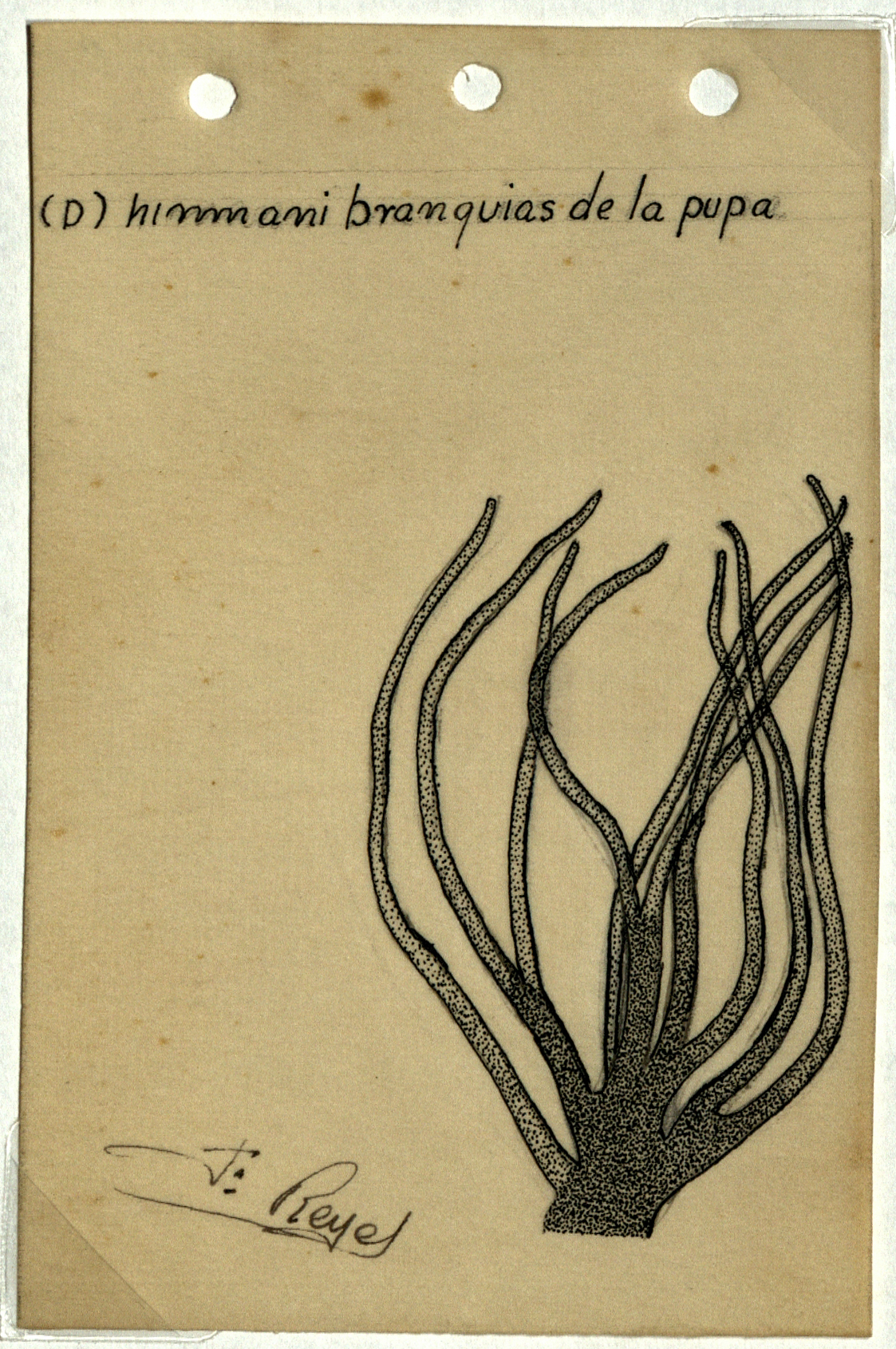 Dibujo de las branquias de la pupa de (D) himmani. Campaña contra la oncocercosis y mal de pinto en la Sierra Norte del Estado de Oaxaca.