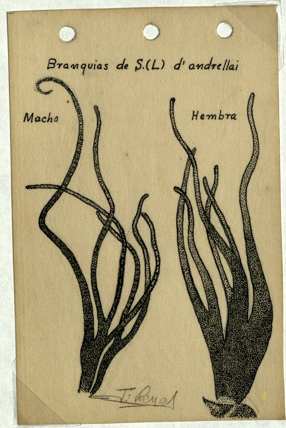 Branquias de S. (L) d´andrellai, macho y hembra.