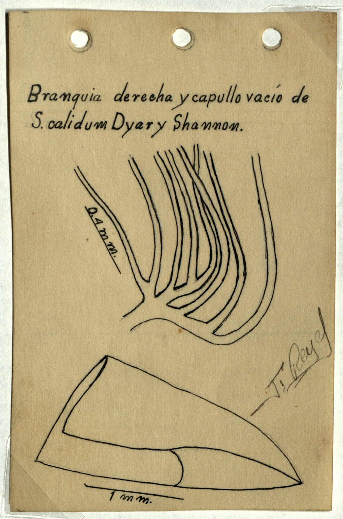 Branquia derecha y capullo vacío de S. calidum Dyer Shannon.