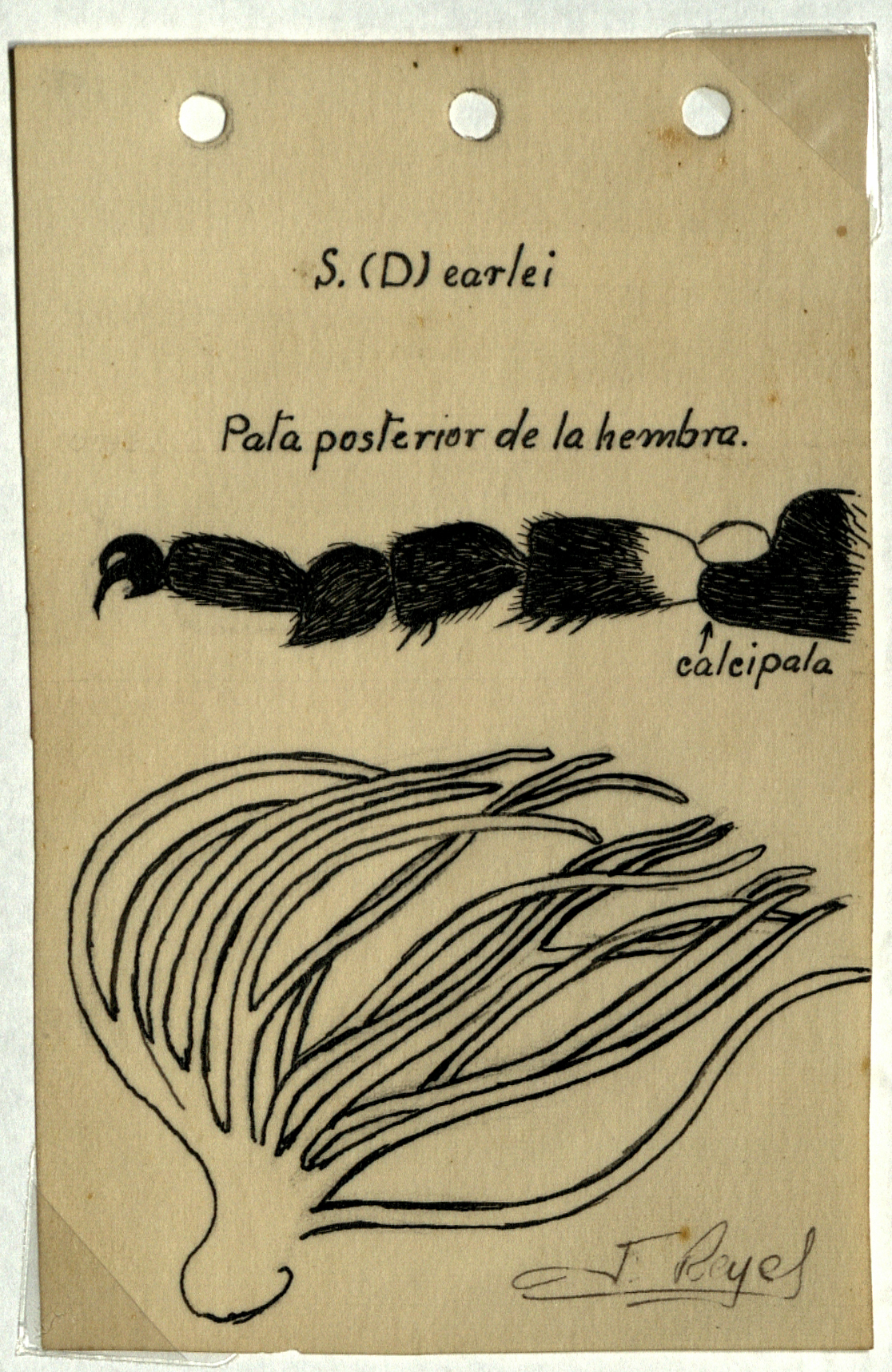 Dibujo de la pata posterior de la hembra de S. (D) earlei. Campaña contra la oncocercosis y mal de pinto en la Sierra Norte del Estado de Oaxaca.