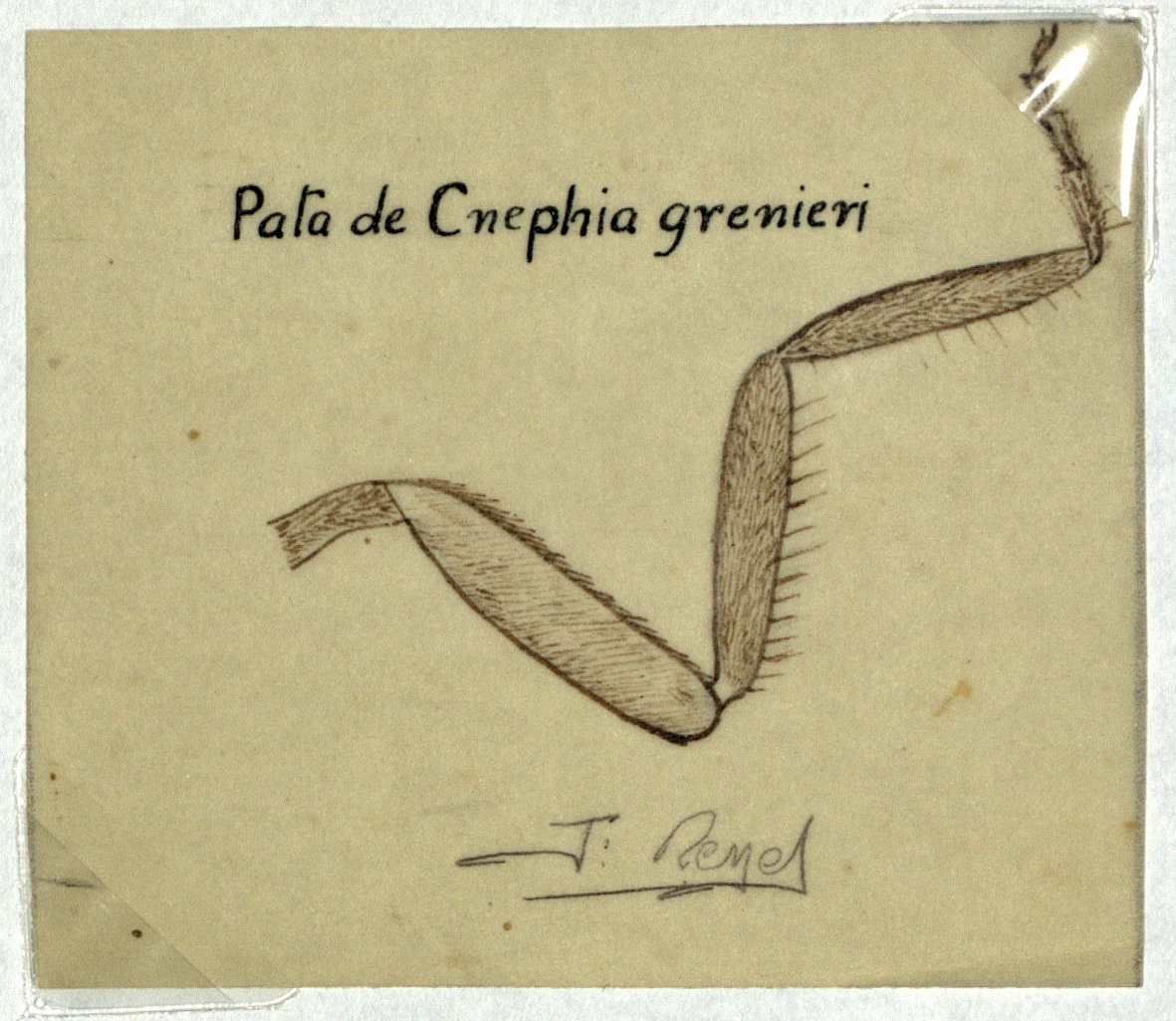 Dibujo de la pata del simúlido Cnephia grenieri, contiene firma del autor. Compaña contra la oncocercosis y mal del pinto en la Sierra Norte de Oaxaca.