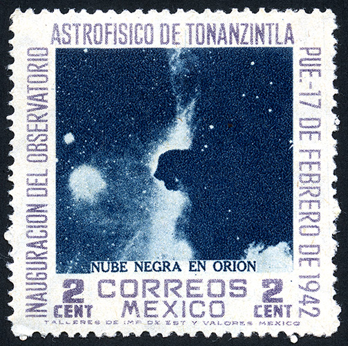 Congreso de Astrofísica e Inauguración del Observatorio de Tonanzintla -- Con marca de Agua: CORREOS MEXICO ( XI ) -- Fotograbado -- Con Perforación -- Dos Centavos -- Violeta y Azul Oscuro