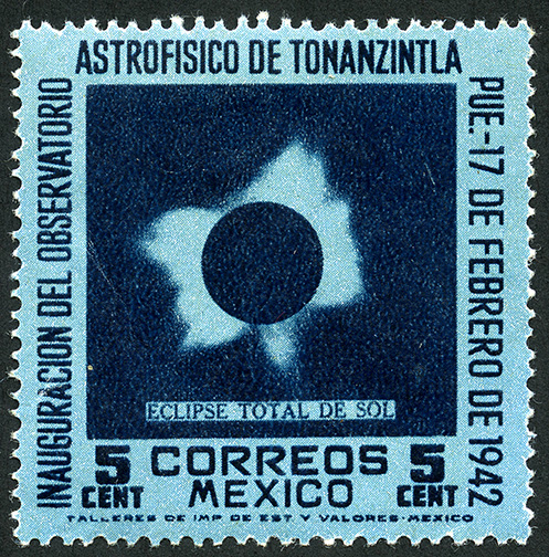 Congreso de Astrofísica e Inauguración del Observatorio de Tonanzintla -- Con marca de Agua: CORREOS MEXICO ( XI ) -- Fotograbado -- Con Perforación -- Cinco Centavos -- Azul y Azul Oscuro