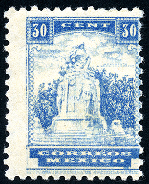 Monumento a los Niños Héroes -- Con marca de Agua: S.H.C.P. MEXICO Y ÁGUILA EN CIRCULO (XIV) -- Litografiado -- Con Perforación -- Treinta Centavos -- Ultramarino