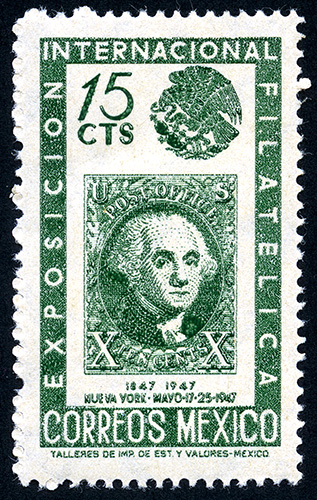 Escudo Nacional y Segundo Timbre de la Primera Emisión de EUA -- Con marca de Agua: GOBIERNO MEXICANO Y ÁGUILA EN CÍRCULO (XV) -- Fotograbado -- Con Perforación -- Quince Centavos -- Verde