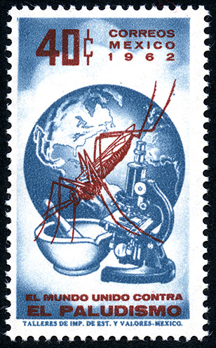 Lucha Mundial contra el Paludismo -- Con marca de Agua: MEX-MEX Y ÁGUILA EN CÍRCULO ABIERTO EN POSICIÓN VERTICAL ( XVI ) -- Fotograbado -- Con Perforación -- Cuarenta Centavos -- Azul Grisáceo Café Rojizo