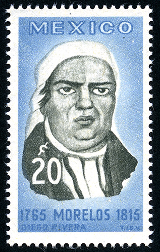 No. Scott: 967 -- Año de Emisión: 1965 -- Valor facial: Veinte Centavos -- Variedad de color: Azul y Negro -- Perforación: 14 -- Tipo de impresión: Grabado Timbre Postal Mexicano en colores azul y negro, en la imagen se observa la efigie de José María Morelos y Pavón, en la parte superior aparece escrito "MEXICO" y en la parte inferior el valor facial de "20 CTS" y "1765 MORELOS 1815". Para más información favor de dirigirse a biblioteca@mufi.org.mx