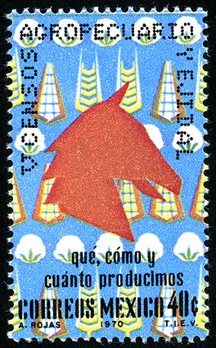 V Censo Agropecuario y Ejidal -- Con marca de Agua: MEX GRANDE Y ÁGUILA EN CÍRCULO CERRADO ( XVII ) -- Huecograbado -- Con Perforación -- Cuarenta Centavos -- Magenta, Verde, Amarillo, Azul, Negro