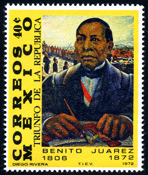No. Scott: 1044 -- Año de Emisión:1972 -- Valor facial: Cuarenta Centavos -- Variedad de color: Multicolor -- Perforación: 14 -- Tipo de impresión: Grabado Timbre Postal Mexicano multicolor, en la imagen se observa la efigie de Benito Juárez, en el contorno izquierdo está escrito "CORREOS MEXICO", el valor facial de "40 C" y "TRIENFO DE LA REPUBLICA", en la parte inferior "BENITO JUÁREZ 1806-1872". Para más información favor de dirigirse a biblioteca@mufi.org.mx