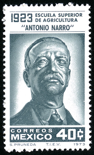 No. Scott: 1053 -- Año de Emisión:1973 -- Valor facial: Cuarenta Centavos -- Variedad de color: Gris Pizarra -- Perforación: 14 -- Tipo de impresión: Grabado Timbre Postal Mexicano en color gris pizarra, en la imagen aparece la efigie de Antonio Navarro, en la parte superior aparece escrito "1923 ESCUELA SUPERIOR DE AGRICULTURA " "ANTONIO NARRO y en la oarte inferior "CORREOS MEXICO 40 C". Para más información favor de dirigirse a biblioteca@mufi.org.mx