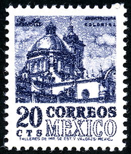 No. Scott: 1054 -- Año de Emisión: 1973 -- Valor facial: Veinte Centavos -- Variedad de color: Azul Oscuro -- Perforación: 14 -- Tipo de impresión: Grabado Timbre Postal Mexicano en color azul oscuro, en la imagen se observa la Catedral de la Ciudad de Puebla,en la parte superior aparece escrito "ARQUITECTURA COLONIAL" , en la parte inferior "CORREOS MEXICO" y el valor facial de "20 CTS". Para más información favor de dirigirse a biblioteca@mufi.org.mx
