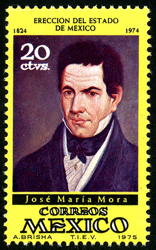 No. Scott: 1084 -- Año de Emisión: 1975 -- Valor facial: Veinte Centavos -- Variedad de color: Amarillo, Negro y Rojo Oscuro -- Perforación: 14 -- Tipo de impresión: Grabado Timbre Postal Mexicano en colores amarillo, negro y rojo oscuro, en la imagen se observa la efigie de José María Mora, en la parte superior está escrito "ERECCION DEL ESTADO DE MEXICO 1824-1974", el valor facial de "20 C" y en la parte inferior "CORREOS MEXICO". Para más información favor de dirigirse a biblioteca@mufi.org.mx