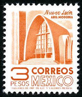 No. Scott: 1097 -- Año de Emisión: 1975 -- Valor facial: Tres Pesos -- Variedad de color: Naranja y Café -- Perforación: 14 -- Tipo de impresión: Grabado Timbre Postal Mexicano en colores naranja y café, en la imagen se observa la fachada de un edificio moderno, en la parte inferior aparece escrito "CORREOS MEXICO" y el valor facial de "3 PESOS". Para más información favor de dirigirse a biblioteca@mufi.org.mx