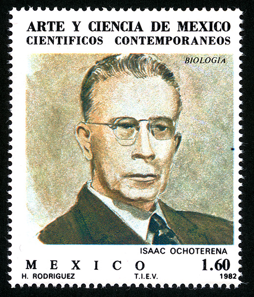No. Scott: 1294 -- Año de Emisión: 1982 -- Valor facial: Un Peso con Sesenta Centavos -- Variedad de color: Multicolor -- Perforación: 14x14 1/2 -- Tipo de impresión: Grabado Timbre Postal Mexicano multicolor, en la imagen aparece el retrato del Biólogo Isaac Ochotonera, en la parte superior aparece escrito "ARTE Y CIENCIA DE MEXICO", "CIENTIFICOS CONTEMPORANEOS", en la parte inferior "MEXICO" y el valor facial de "1.60". Para más información favor de dirigirse a biblioteca@mufi.org.mx