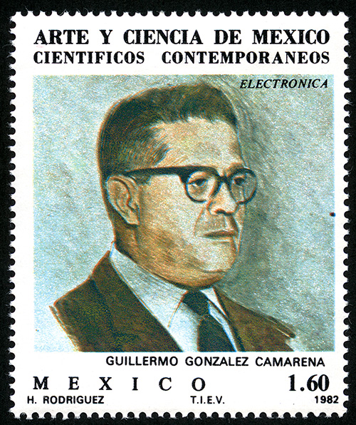 No. Scott: 1297 -- Año de Emisión: 1982 -- Valor facial: Un Peso con Sesenta Centavos -- Variedad de color: Multicolor -- Perforación: 14x14 1/2 -- Tipo de impresión: Grabado Timbre Postal Mexicano multicolor, en la imagen aparece el retrato del Ingeniero Electrónico Guillermo González Camarena, en la parte superior aparece escrito "ARTE Y CIENCIA DE MEXICO", "CIENTIFICOS CONTEMPORANEOS", en la parte inferior "MEXICO" y el valor facial de "1.60". Para más información favor de dirigirse a biblioteca@mufi.org.mx