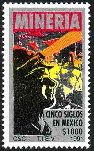 No. Scott: 1690 -- Año de Emisión: 1991 -- Valor facial: Mil Pesos -- Variedad de color: Negro, Plata, Rojo y Amarillo -- Perforación:14 x 14 1/2 -- Tipo de impresión: Huecograbado Timbre Postal Mexicano en colores negro, plata, rojo y amarillo, al fondo de la imagen se observa una mina y en primer plano, aparece la silueta de perfil de un hombre, del busto hacia arriba, al parecer esta persona lleva puesto un casco y una lámpara en la cabeza, en la parte superior está escrito "MINERIA", en la parte inferior "CINCO SIGLOS EN MEXICO" y el valor facial de "$1000". Para más información favor de dirigirse a biblioteca@mufi.org.mx