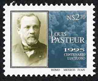 No. Scott: 1927 -- Año de Emisión: 1995 -- Valor Facial: N$ 2.70 -- Azul, sepia y negro -- Perforación: 14 -- Tipo de Impresión: Offset Timbre Postal Mexicano en colores azul, sepia y negro, del lado izquierdo de la imagen se observa el retrato del químico francés Louis Pasteur, del lado derecho está escrito el valor facial de "N$ 2.70", "1995", "CENTENARIO LUCTUOSO" y "ROMO, MÉXICO, IVÁN". Para más información favor de dirigirse a biblioteca@mufi.org.mx