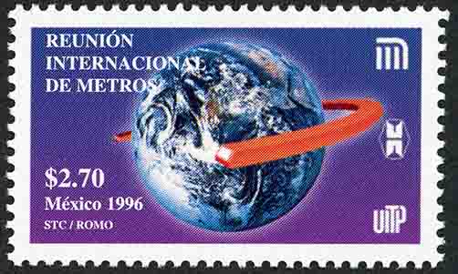 No. Scott: 2003 -- Año de Emisión: 1996 -- $ 2.70 -- Multicolor -- Perforación: 13 1/2 -- Tipo de Impresión: Offset Fluorescente, Litografiado Timbre Postal Mexicano multicolor, la imagen nos muestra una vista de la tierra desde la luna, en la estampilla está escrito "REUNIÓN INTERNACIONAL DE METROS", el valor facial de "$ 2.70", "MEXICO 1996" y "SCT / ROMO". Para más información favor de dirigirse a biblioteca@mufi.org.mx