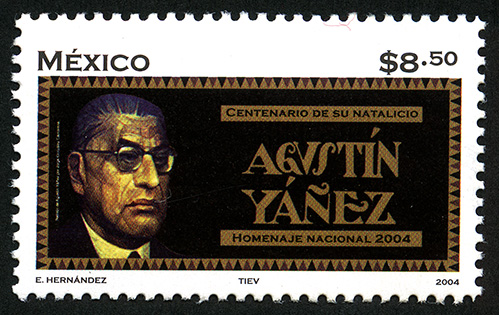 No. Scott: 2346 -- Año de Emisión: 2004 -- Valor Facial: $ 8.50 -- Multicolor -- Perforación: 13 -- Tipo de Impresión: Offset Timbre Postal Mexicano multicolor, sobre un fondo negro y dentro de un rectángulo ornamentado, se observa el retrato de Agustín Yañez, quien fue novelista, ensayista, cuentista y político mexicano, en la estampilla está escrito "MÉXICO", el valor facial de "$8.50", "CENTENARIO DE SU NATALICIO AGUSTÍN YAÑEZ, HOMENAJE NACIONAL 2004" y "E. FERNÁNDEZ, TIEV, 2004". Para más información favor de dirigirse a biblioteca@mufi.org.mx