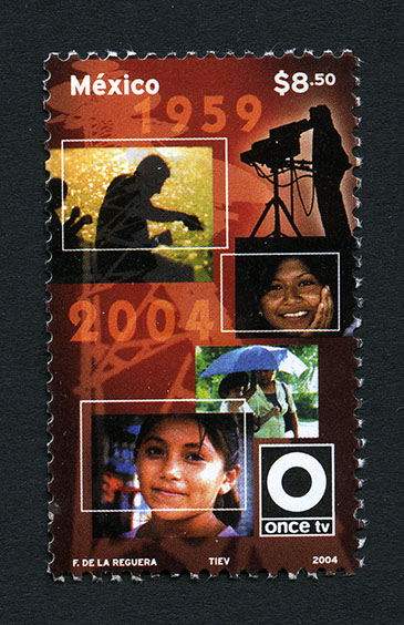 No. Scott: 2383 -- Año de Emisión: 2004 -- Valor Facial: $ 8.50 -- Multicolor -- Perforación: 13 1/4 x 13 -- Tipo de Impresión: Offset Timbre Postal Mexicano multicolor, alusivo al Canal Once de TV, en él se observan imágenes de personas hombres, mujeres y niños que están realizando diferentes actividades de enseñanza. En la estampilla está escrito "MÉXICO", el valor facial de "$8.50", "1959-2004", el emblema del Canal Once y "F. DE LA REGUERA, TIEV, 2004". Para más información favor de dirigirse a biblioteca@mufi.org.mx