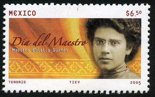 No. Scott: 2442 -- Año de Emisión: 2005 -- Valor Facial: $ 6.50 -- Multicolor -- Perforación: 13 1/4 -- Tipo de Impresión: Offset Timbre Postal Mexicano multicolor, sobre un fondo en colores naranja y amarillo y una línea con grecas, aparece del lado derecho el retrato de la maestra arqueóloga Eulalia Guzmán Barrón, del lado izquierdo se leé "Día del Maestro Maestra Eulalua Guzmán", sobre la estampilla está escrito "MÉXICO", el valor facial de "$ 6.50" y "TENORIO, TIEV, 2005". Para más información favor de dirigirse a biblioteca@mufi.org.mx