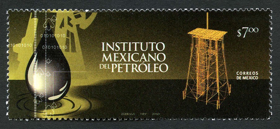 No. Scott: 2683 -- Año de Emisión: 2010 -- Valor Facial: $ 7.00 -- Multicolor -- Perforación: 13 1/4 x 13 -- Tipo de Impresión: Offset Timbre Postal Mexicano multicolor, en la imagen aparece una gota de petroleo y una plataforma de extracción. En la estampilla está escrito "INSTITUTO MEXICANO DEL PETROLEO", el valor facial de "$7.00", "CORREOS DE MÉXICO" y "ZÁRRAGA, TIEV, 2010". Para más información favor de dirigirse a biblioteca@mufi.org.mx