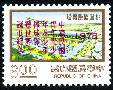 No. Scott: 2113 -- Año de emisión: 1978 -- Valor Facial: $6.00 -- Multicolor -- Perforación: 12 1/2 x 13 -- Tipo de Impresión: Litografía. Estampilla de la Isla de Taiwán conmemorativa, tiene sobreimpreso los "Campeonatos Triples Ganados por Equipos Chinos en la Serie Mundial de Pequeñas Ligas", resaltado en escritura tradicional china, en la estampilla se observa un aeropuerto ubicado en Taipei - Kaohsiung, la estampilla contiene el año de emisión "1978", valor facial "$6.00" y el país emisor "REPUBLIC OF CHINA". Para más información favor de dirigirse a biblioteca@mufi.org.mx.
