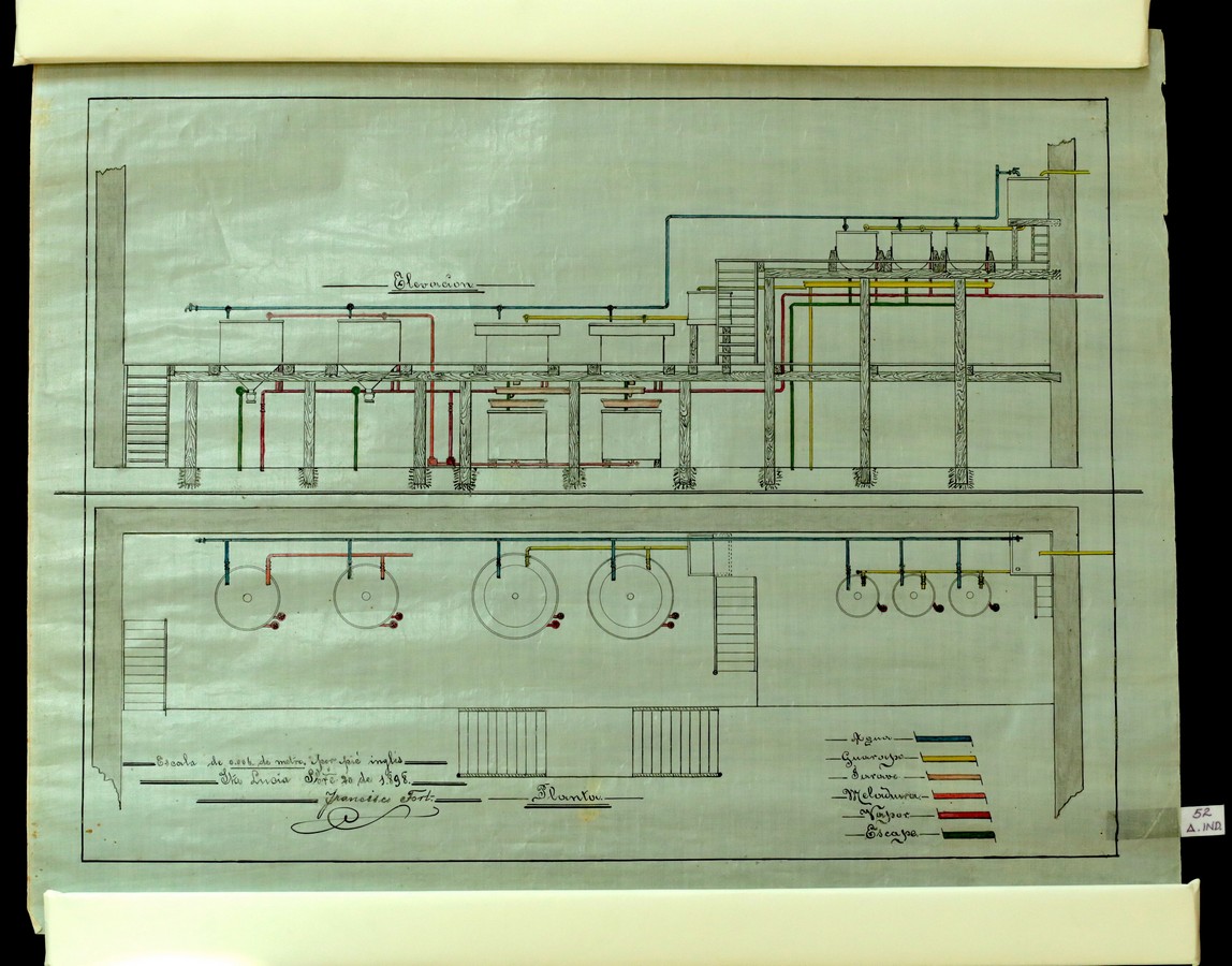 “Escala de 0.06 de metro por pie inglés. Santa Lucía Sept 20 de 1898”. Firmado por Tort. Plano original a tinta negra y color sobre papel tela. Plano de lectura horizontal.Quizás la Hacienda Santa Lucía, ver No. 83 A. IND.