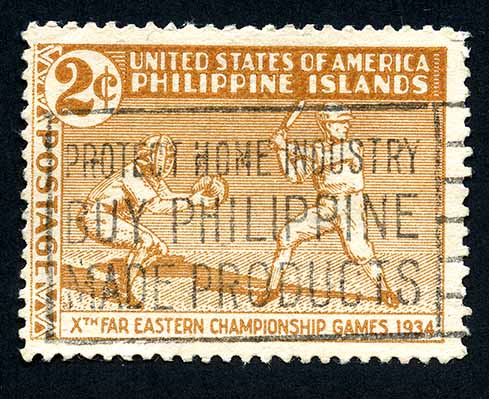 No. Scott: 380 -- Año de emisión: 1934 -- Valor facial: 2c -- Multicolor -- Con perforación: 11 1/2 -- Tipo de Impresión: Tipografía. Timbre conmemorativo haciendo alusión a la conmemoración del Décimo Campeonato del Lejano Este, con variación de color y sello de cancelación. Para más información favor de dirigirse a biblioteca@mufi.org.mx.