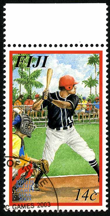 No. Scott: 981 -- Año de emisión: 2003 -- Valor facial: 14c -- Multicolor -- Con perforación: 13 1/4 -- Tipo de Impresión: Litografía. Timbre con sello de cancelación e imagen de un jugador de beisbol vistiendo uniforme negro y blanco. Para más información favor de dirigirse a biblioteca@mufi.org.mx.