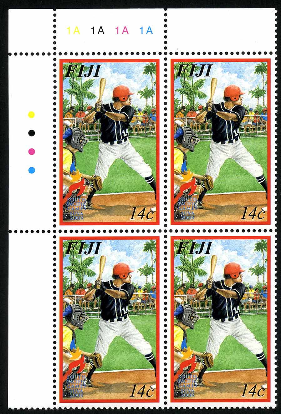 No. Scott: 981 -- Año de emisión: 2003 -- Valor facial: 14c -- Multicolor -- Con perforación: 13 1/4 -- Tipo de Impresión: Litografía. Bloque de cuatro timbres e imagen de jugador de beisbol vistiendo con uniforme negro y blanco. Para más información favor de dirigirse a biblioteca@mufi.org.mx.