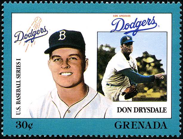 No. Scott: 1671i -- Año de emisión: 1988 -- Valor facial: 30c -- Multicolor -- Con perforación: 14 -- Tipo de Impresión: Litografía. Timbre perforado del profesional beisbolista de Los Ángeles Dodgers Donald Scott Drysdale. Para más información favor de dirigirse a biblioteca@mufi.org.mx.